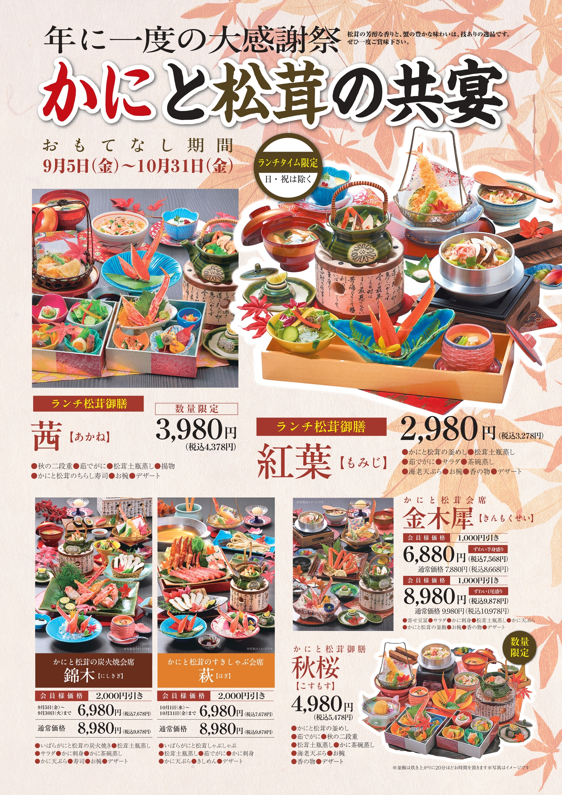 毎年大好評の「かにと松茸の供宴」が徳島甲羅本店、高松甲羅本店で期間限定開催中!